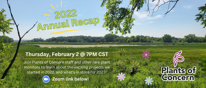 Plants of Concern hosted an Annual Recap of the 2022 monitoring season on Thursday, February 2 at 7PM CST. A recording of the event is available here:Â https://youtu.be/YtqLRUr3fd4