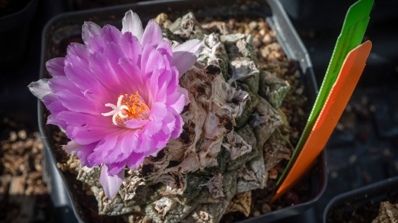 Ariocarpus fissuratus in full bloom. Photo by Marie Dillon.