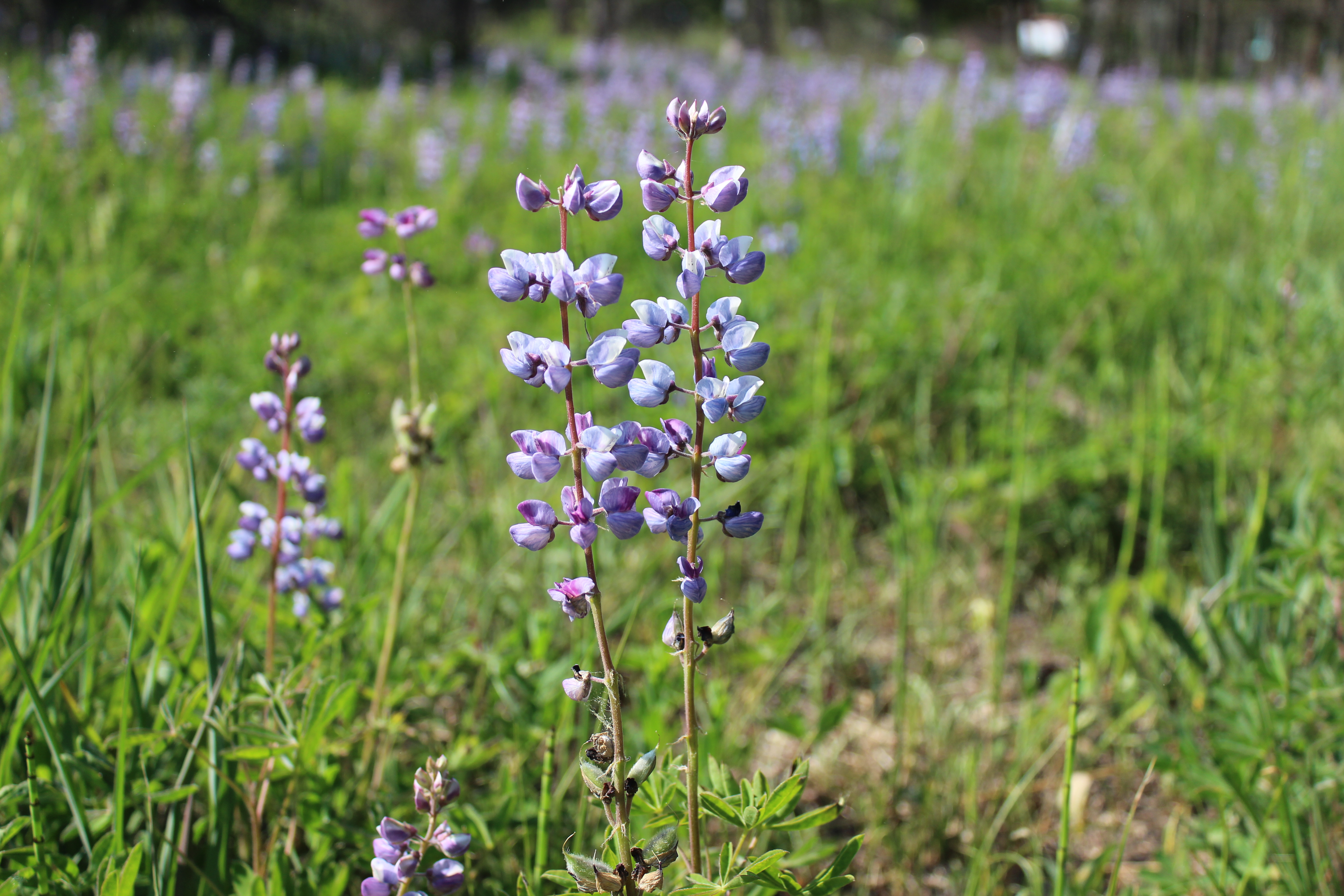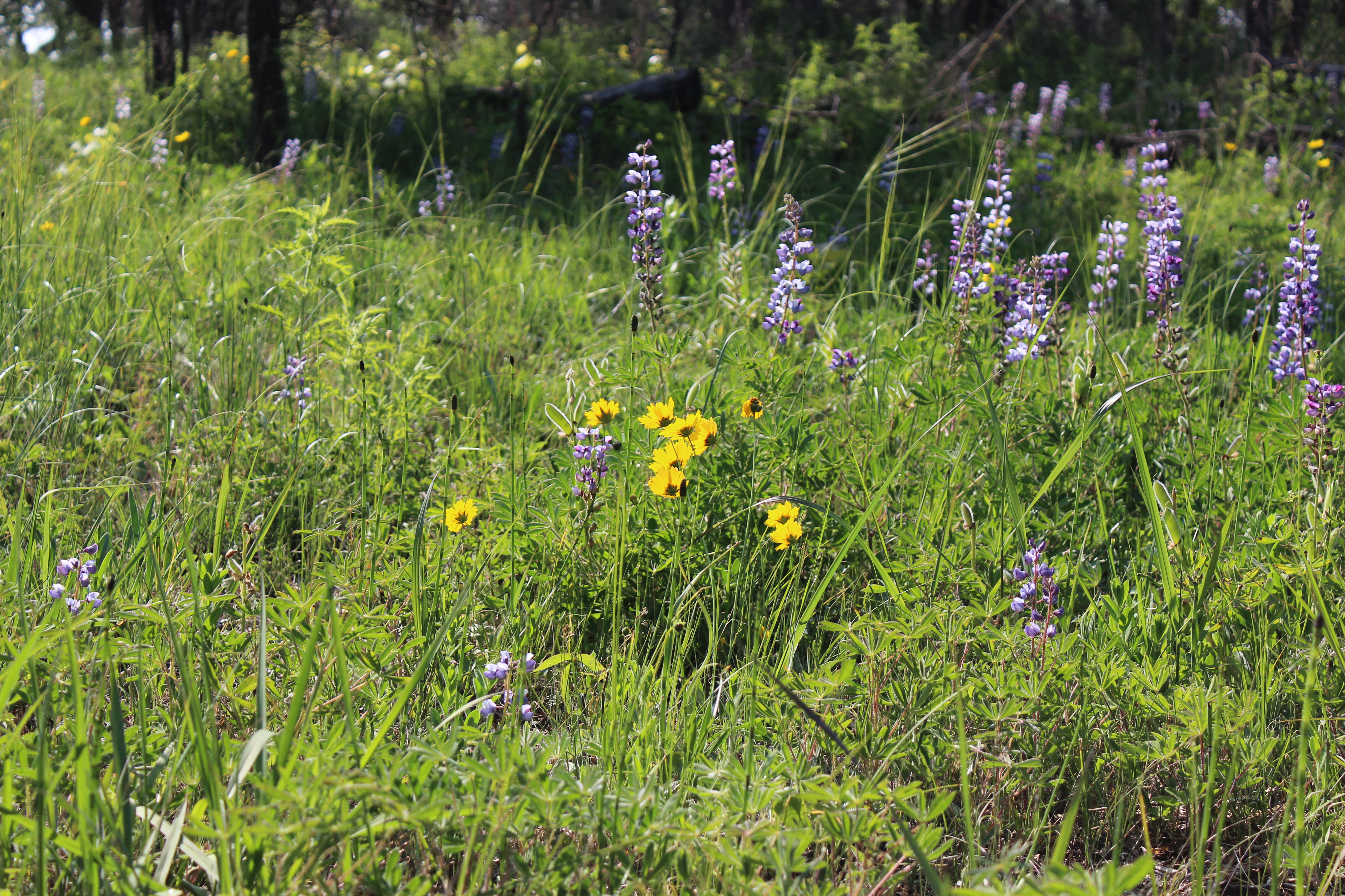 Top: Lupinus perennis in bloom. Bottom: Blooming Lupinus and Coreopsis accompanied by Anemone cylindrica, Hesperostipa spartea, and Equisetum hyemale affine. Photos by Grant Fessler.